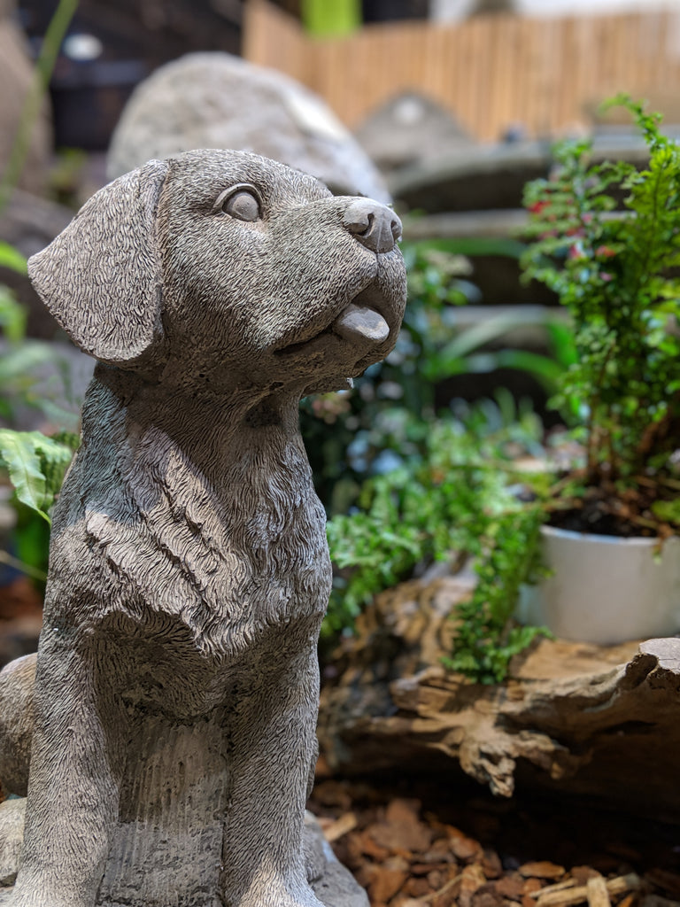 This cheeky statue features a Labrador dog sticking his tongue out.