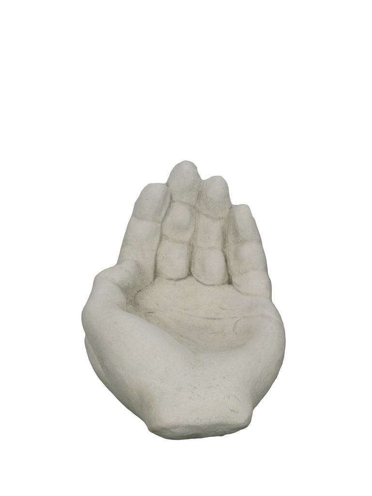 This unique and unusual statue features a large hand, cupped with the palm upwards.