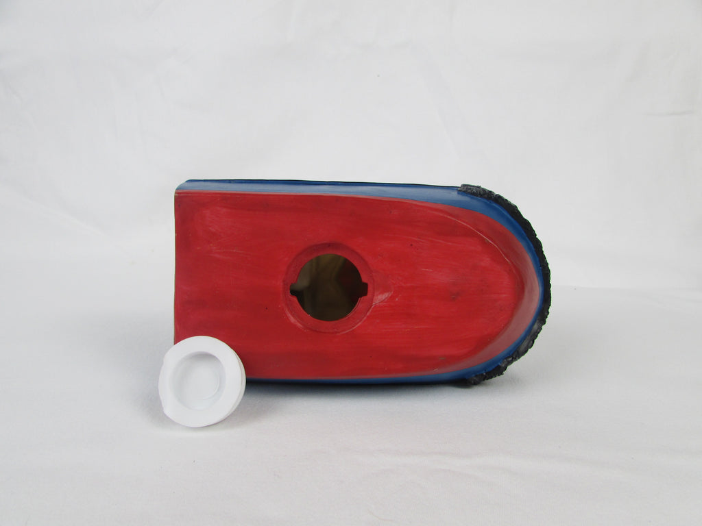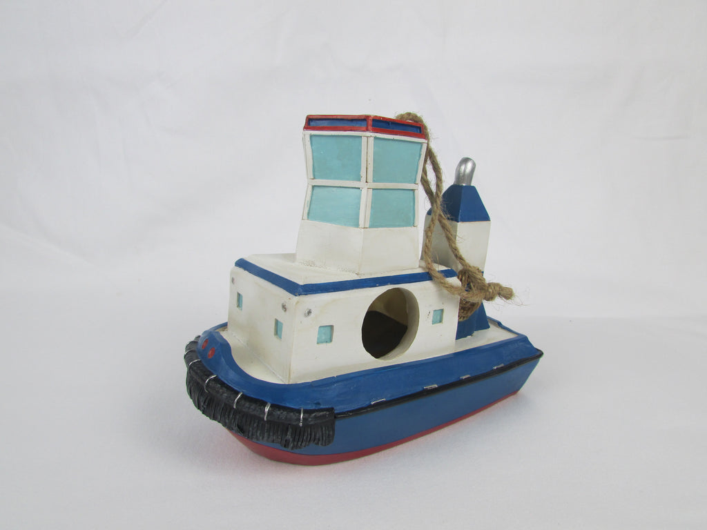 This cute birdhouse is made of poly resin and hand painted in great detail.