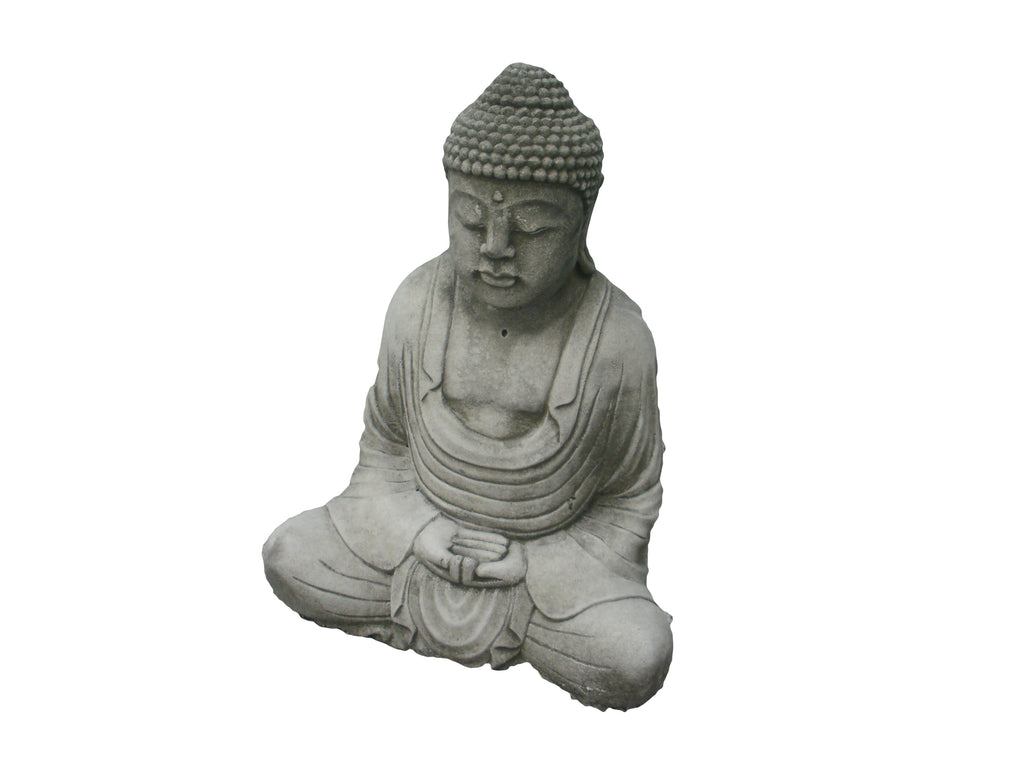 This statue features a Buddha in a seated pose known as the Calming Buddha. This pose sees the Buddha in meditation, face forward, eyes closed and hands in the lap.